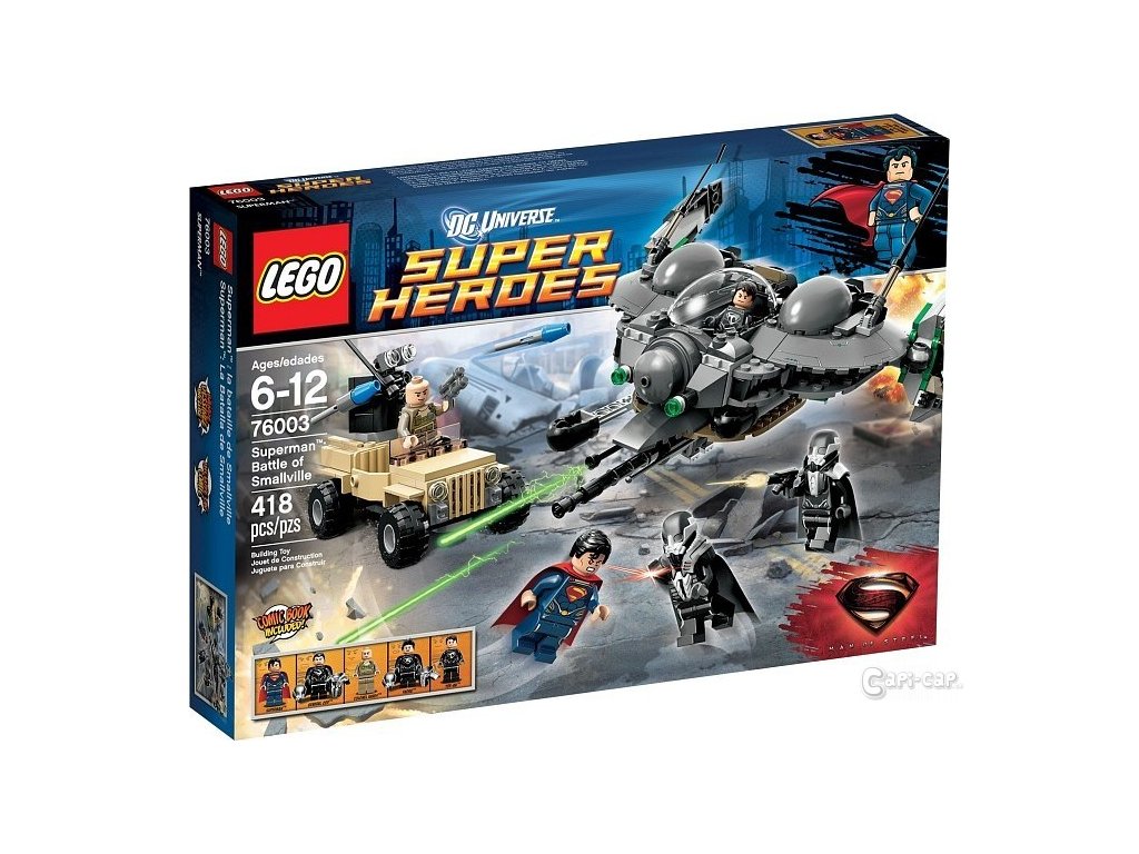 Spolu se Supermanem nedovol Kryptoňanům převzít moc nad městem v bitvě o Smallville! Generál Zod, Faora a Tor-An útočí letounem Black Zero Dropship s nastavitelnými křídly, velkým otočným dělem, dvěma odpalovači raket, otvíracím kokpitem, nákladním prostorem a stojanem na zbraně! Povolej se Supermanem na pomoc plukovníka Hardyho v terénním voze se dvěma raketovými děly s otočnou základnou a zastavte Kryptoňany! Součástí je 5 minifigurek: Superman, plukovník Hardy, generál Zod, Faora a Tor-An.