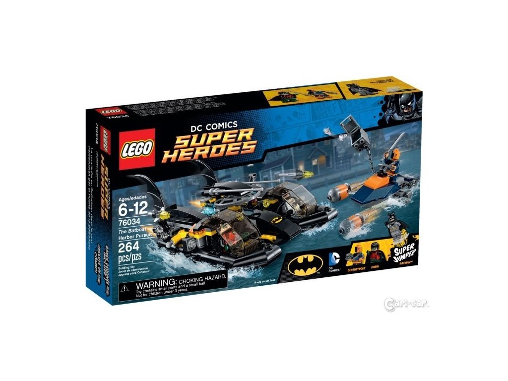 Deathstroke uloupil z banky diamanty a je s nimi na útěku na svém těžce vyzbrojeném tryskovém člunu. Umísti Batmana a Robina do kokpitu Batboatu v přístavu Gotham City a vyraz s nimi na pronásledování. Otevři skrytou radarovou věž a na kontrolních panelech vystopuj stopy tryskového člunu. Vyhni se raketovým střelám z tryskového člunu a kličkuj, aby se Deathstrokovi nepodařilo superskokem srazit radar. Pak aktivuj oddělovací funkci, abys mohl vypustit vznášedla superhrdinů, zaútoč na zlosyna ze zálohy a získej nazpět trezor s drahokamy. Obsahuje 3 minifigurky s doplňky: Batman, Deathstroke a Robin.