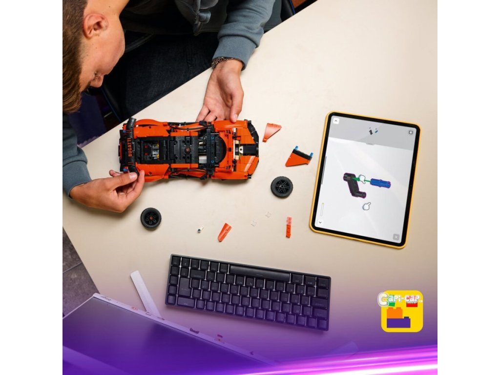 Stavebnice je vybavena řadou funkčních prvků, jež přibližují zážitek ze skutečného inženýrství. Na horní straně modelu je umístěn ovládací knoflík, který umožňuje řídit pohyb vozu. Model také nabízí pohled na detailní motor W16 pod otevřenou kapotou, což přispívá k autenticitě a zábavě při jeho stavbě i hraní. Dveře vozu lze také otevírat, což dovoluje nahlédnout do interiéru a přidává další úroveň interakce. Tyto mechanické funkce podporují kreativitu a technické myšlení mladých stavitelů.