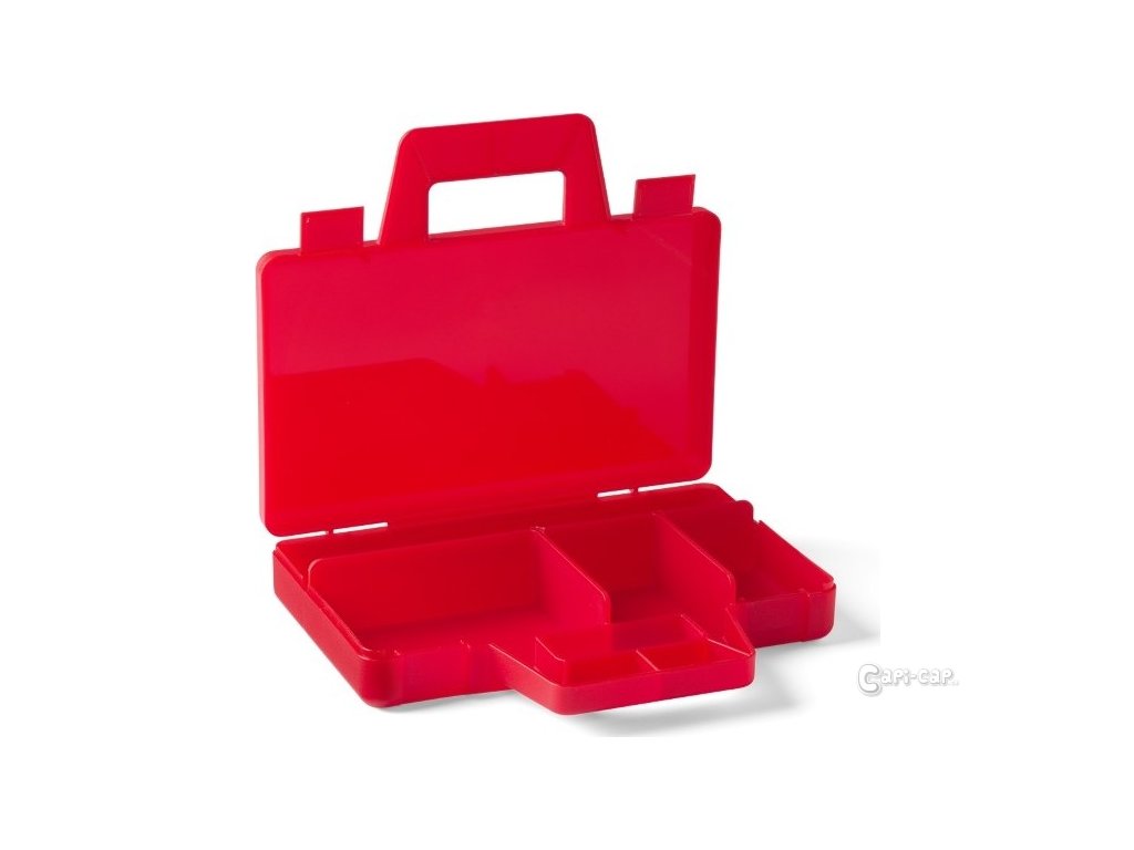 Úložný box ve tvaru kufříku má malé přihrádky pro oddělení LEGO kostiček, minifigurek a dalších prvků stavebic a je ideální pro děti při cestování, aby si mohly vzít své oblíbené stavebnice všude s sebou.
