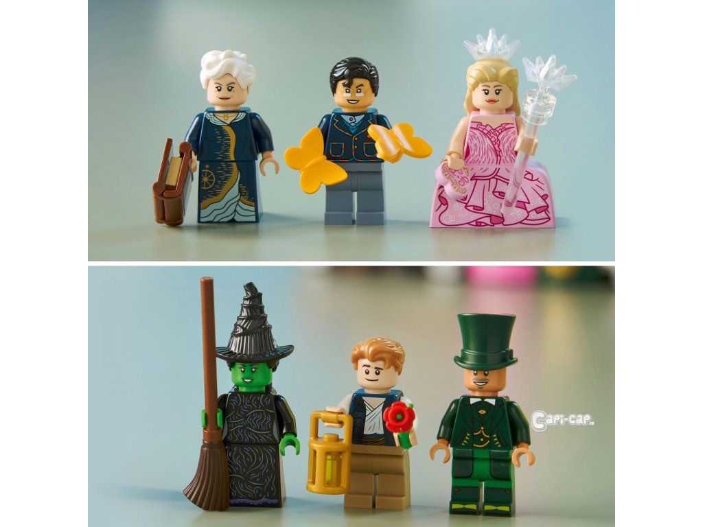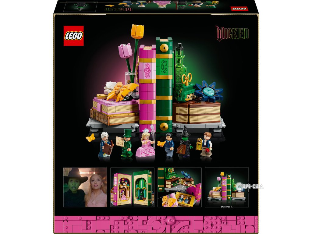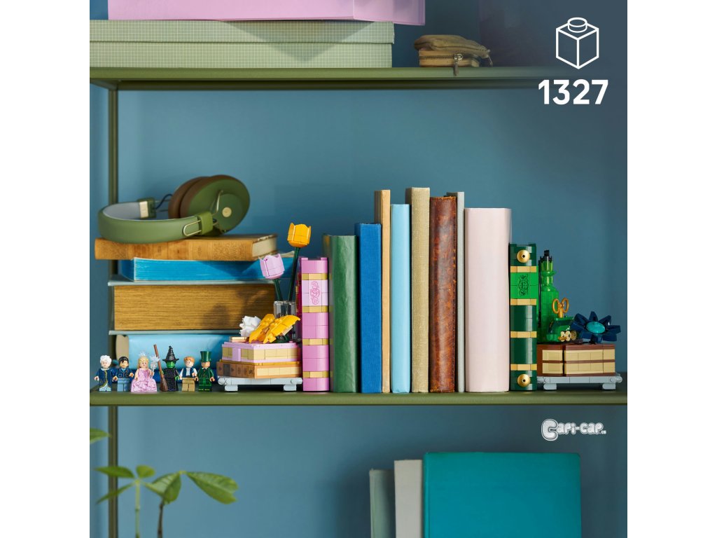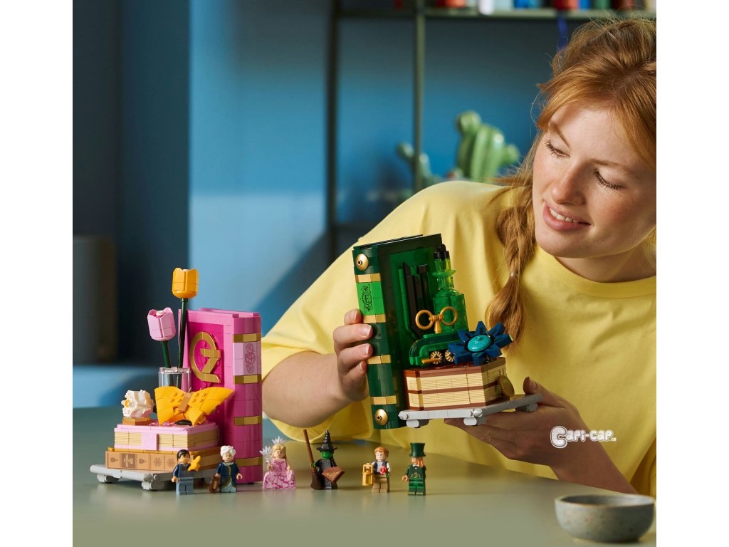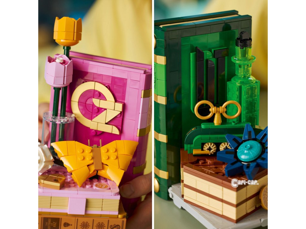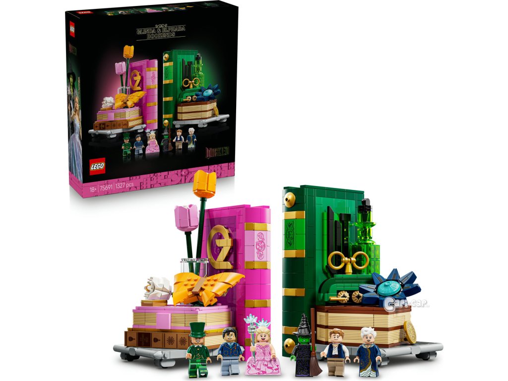 Cestujte do fantasy světa Wicked s Knižními zarážkami: Glinda a Elphaba (75691) pokaždé, když si budete prohlížet své knihy. Dospělí fanoušci filmů se vydají na kouzelné stavitelské dobrodružství a postaví si dekorativní knižní zarážky LEGO® Wicked. Elphabina zelená zarážka na knihy obsahuje lahvičku se zeleným elixírem, model Emerald City a Grimmerie s tajnými přihrádkami pro minifigurku čaroděje a Fiyera. Uvnitř Glindiny růžové zarážky na knihy z kostek LEGO najdete model Shiz univerzity. Model motýla se uvelebí na hromádce knih s přihrádkou na minifigurky Madame Morrible a Pfanneeho. Tyto jedinečné zarážky LEGO obsahují hned 6 minifigurek LEGO na motivy filmů Wicked, včetně Glindy a Elphaby. Tato parádní dekorace na psací stůl představuje kreativní dárek pro dospělé, kteří milují stavění. Každý model má vlastní návod na stavění, takže si stavebnici můžete postavit společně s nejlepším kamarádem. Stavebnice obsahuje 1 327 dílků. Fantasy dárková stavebnice pro dospělé fanoušky filmů Wicked – Vydejte se do světa Wicked a postavte si výstavní model Knižní zarážky: Glinda a Elphaba Dekorativní zarážky s 6 postavami z filmů Wicked – Nechybí Glinda, Elphaba, Čaroděj, Madame Morrible, Fiyero a Pfannee v charakteristických kostýmech a doplňcích Dekorativní knižní zarážky – Postavte si model knihy Grimmerie, Glindin deník a motýla, vlak do Emerald City, Elphabinu modrou květinu a láhev zeleného elixíru a objevte skryté odkazy na filmy Stavebnice pro dospělé – Knižní zarážka s Glindou skrývá model Shiz univerzity a deník, do kterého se vejdou 2 minifigurky, a Elphabina zarážka obsahuje Emerald City a knihu Grimmerie, do které se vejde Čaroděj a Fiyero Dárek pro ženy, muže i dospělé fanoušky filmů Wicked – Tip na nápaditý dárek pro dospělého nebo nejlepšího kamaráda, který miluje stavění Přineste si domů kouzlo Wicked – Se stavebnicemi LEGO® Wicked si fanoušci filmů postaví kouzelné okamžiky z filmů Ponořte se do stavění – Užijte si každý okamžik stavění s aplikací LEGO® Builder, která vám umožní přibližovat a otáčet modely ve 3D, sledovat svůj postup a ukládat všechny stavebnice na jednom místě Rozměry – Stavebnice se skládá z 1 327 dílků a obsahuje zarážku na knihy s motivy Glindy, která měří přes 20 cm na výšku 11 cm do hloubky a zarážku na knihy s motivy Elphaby, která měří přes 20 cm na výšku a 11 cm do hloubky