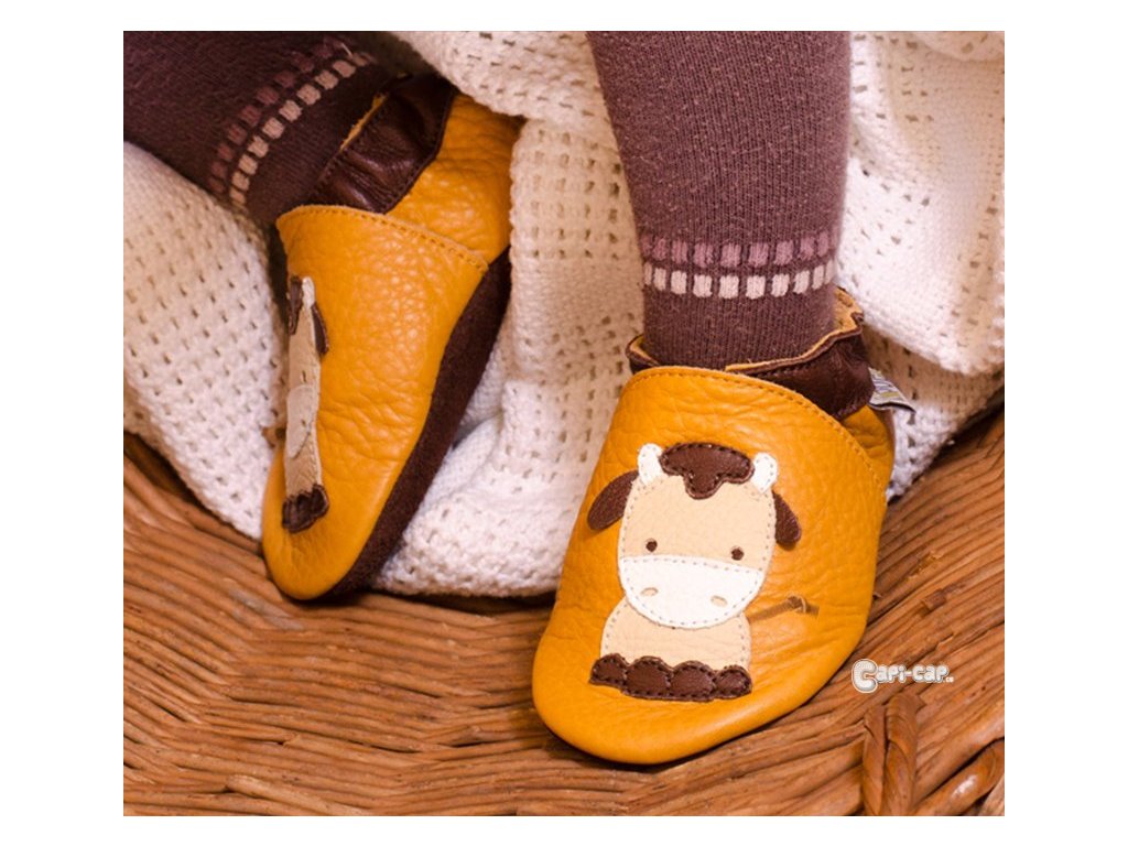 Capáčky z pravé kůže, které mají pružnou gumičku, díky které se dobře nazouvají a drží na nožičkách. Dítě nemá potřebu si je sundávat, protože jsou velmi lehké a neobtěžují na nožičce. Navíc není potřeba kupovat každou chvíli nové, protože v sobě skrývají dvě velikosti. Dítěti se chůze neklouže, naopak je více stabilní a jsou vhodné i na venkovní suché chození a ideálně do terénu, kde posiluje svojí nožku, chodí tzv. naboso :-)