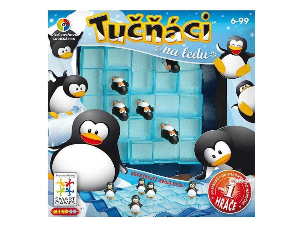 Pět tučňáků se pohybuje po ledové ploše. Ledové kry se posouvají a srážejí a tučňáci na nich tancují a kloužou všemi směry. Dokážete prolomit ledy a poskládat všechny kry na herní desku? A budou všichni tučňáci na správných místech? Tučňáci na ledu je logická hra , která vás nenechá chladnými. Pro každého hráče je to dvojitá výzva. Je třeba nejen umístit všechny dílky na správná místa, ale také vybrat pro každý dílek ten správný tvar.