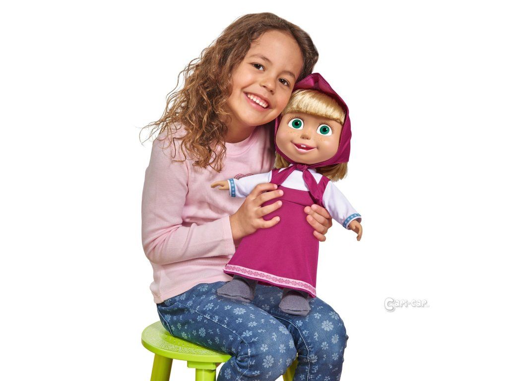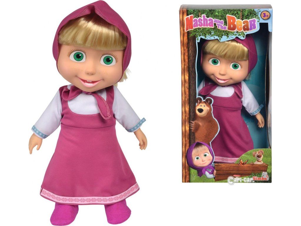 Panenka Máša z dětského seriálu Máša a medvěd. Panenka má měkké tělíčko. Výška panenky 40 cm.