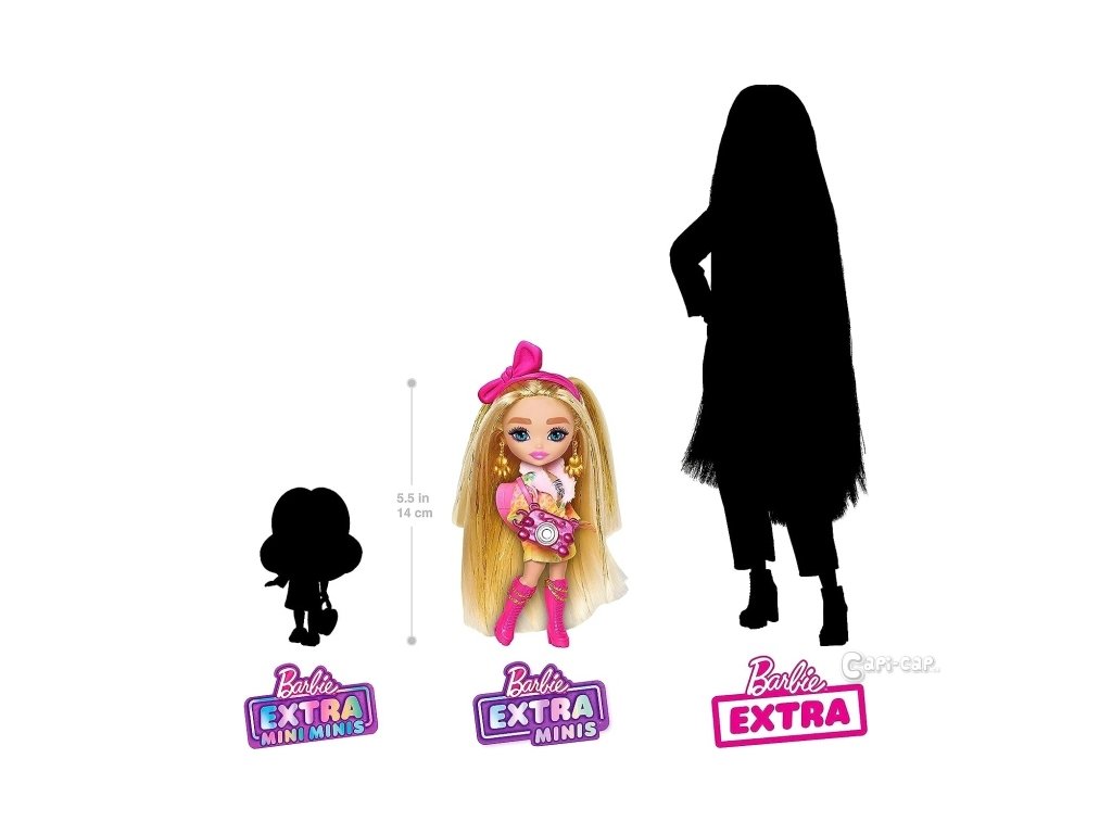 Jsou stejně extravagantní jako panenky Barbie® Extra, jen v miniaturizovaném provedení. Tyto 14 cm vysoké panenky jsou malé, ale jsou to velké osobnosti s hravým vzhledem. Každá panenka má EXTRA dlouhé vlasy, stylové módní oblečky a luxusní doplňky. Díky kloubům v loktech a kolenou jsou panenky připraveny pózovat! A se stojánkem, který je dodáván ke každé panence Barbie® Extra Minis, si děti mohou vytvořit vlastní výstavku těchto panenek!