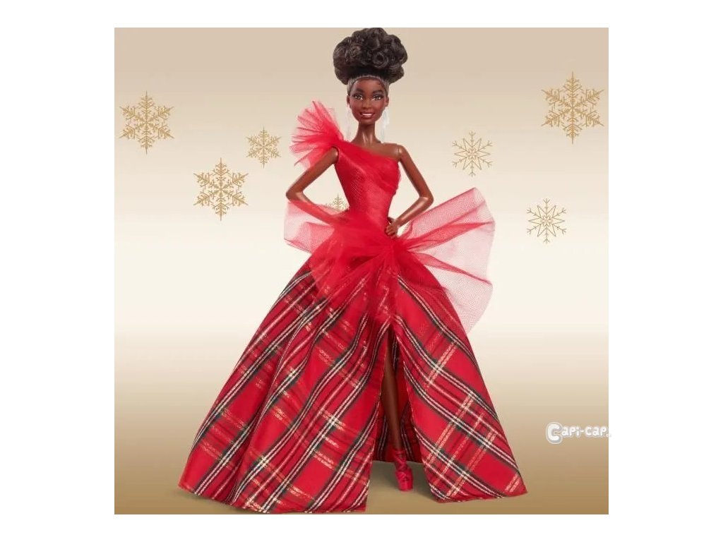 Oslavte vánoční sezónu se sběratelskou panenkou Barbie® s okouzlujícím, slavnostním vzhledem, oblečenou v elegantních šatech a se sofistikovanými doplňky.