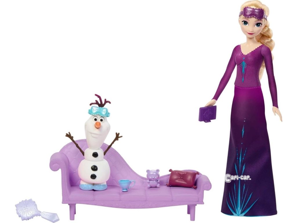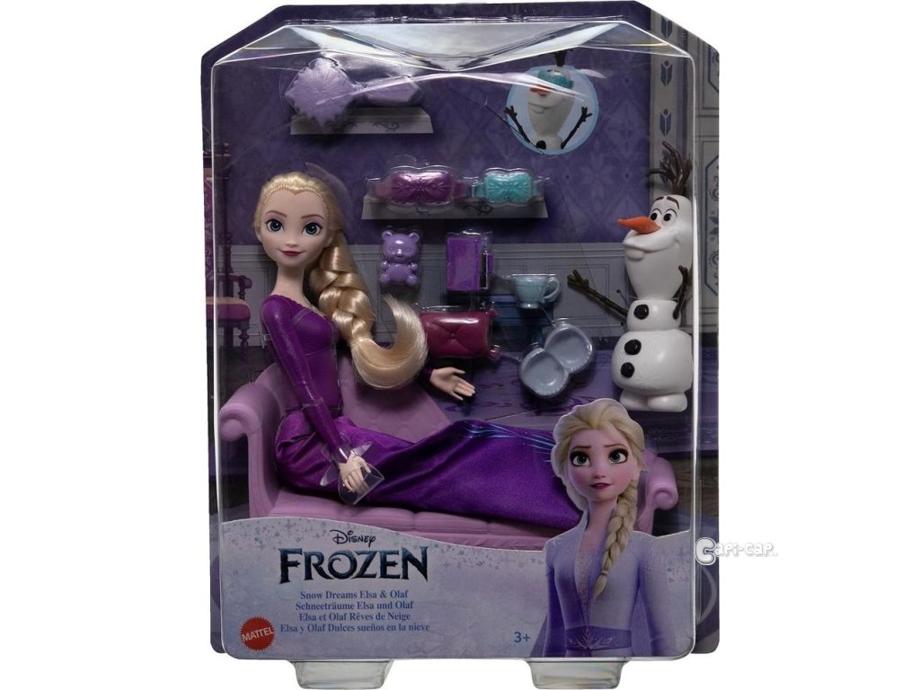 Elsina kloubová panenka má na sobě fialovou noční košilku se sukní a odnímatelnými pantoflemi, navíc s dlouhými vlasy a kartáčem, aby si je mohl upravit podle svého. Se všemi těmito zábavnými doplňky budou chlapci a dívky rádi připravovat Elsu a Olafa do postele a představovat si sladké sny, které budou tyto dvě milované postavy mít. Fanoušci mohou sbírat všechny módní panenky a doplňky Disney Frozen a představovat si svá vlastní dobrodružství v Arendelle a na dalších vzdálených místech.