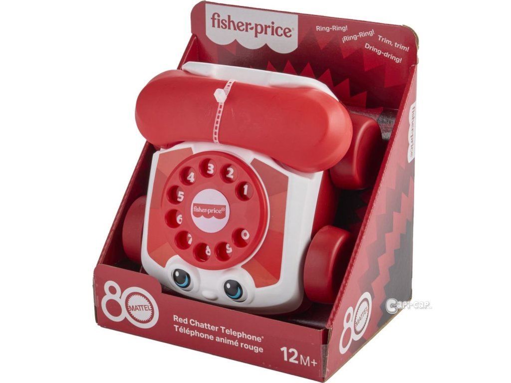 Klasická tahací hračka Fisher-Price dostává nový vzhled na počest 80. výročí společnosti Mattel! Tento ikonický telefon v červené barvě Mattelu má všechny vlastnosti, které si pamatujete – otáčecí ciferník, realistické zvuky zvonění a oči, které se pohybují nahoru a dolů, když děti telefon tahají za sebou. Tento přátelský telefon podporuje první dětské hraní na profese a zároveň pomáhá posilovat hrubou motoriku, když se děti procházejí a „volají“ všude možně. Barvy a vzhled výrobku se mohou lišit.