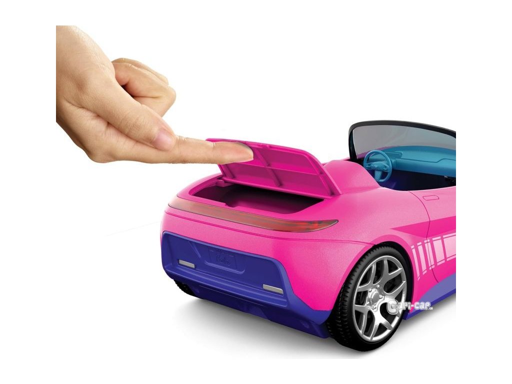 Roztomilé růžové autíčko na dálkové ovládání pojme dvě Barbie® panenky a má místo v kufru pro uložení důležitých cestovních doplňků.