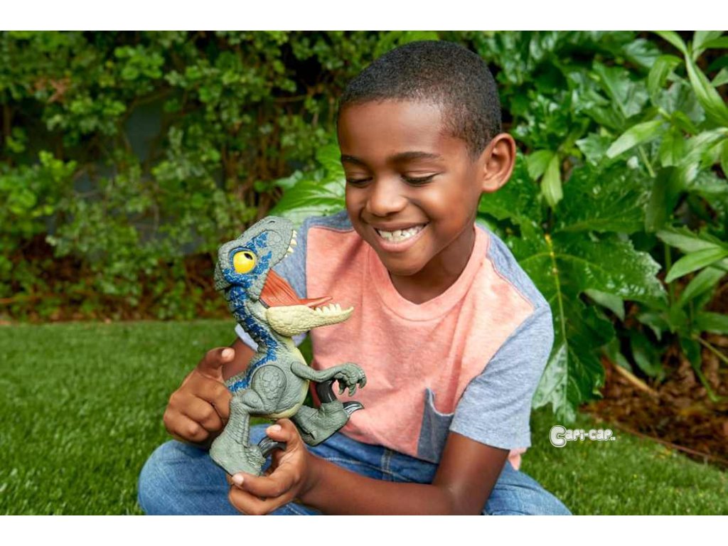 Tento MEGA ŘVOUCÍ dinosaurus Velociraptor Blue oživuje zvuky dravců z Jurského světa s divokým řevem, žvýkáním vyvolaným svačinou a dokonce i hlasitým říháním! NAKRM HO!