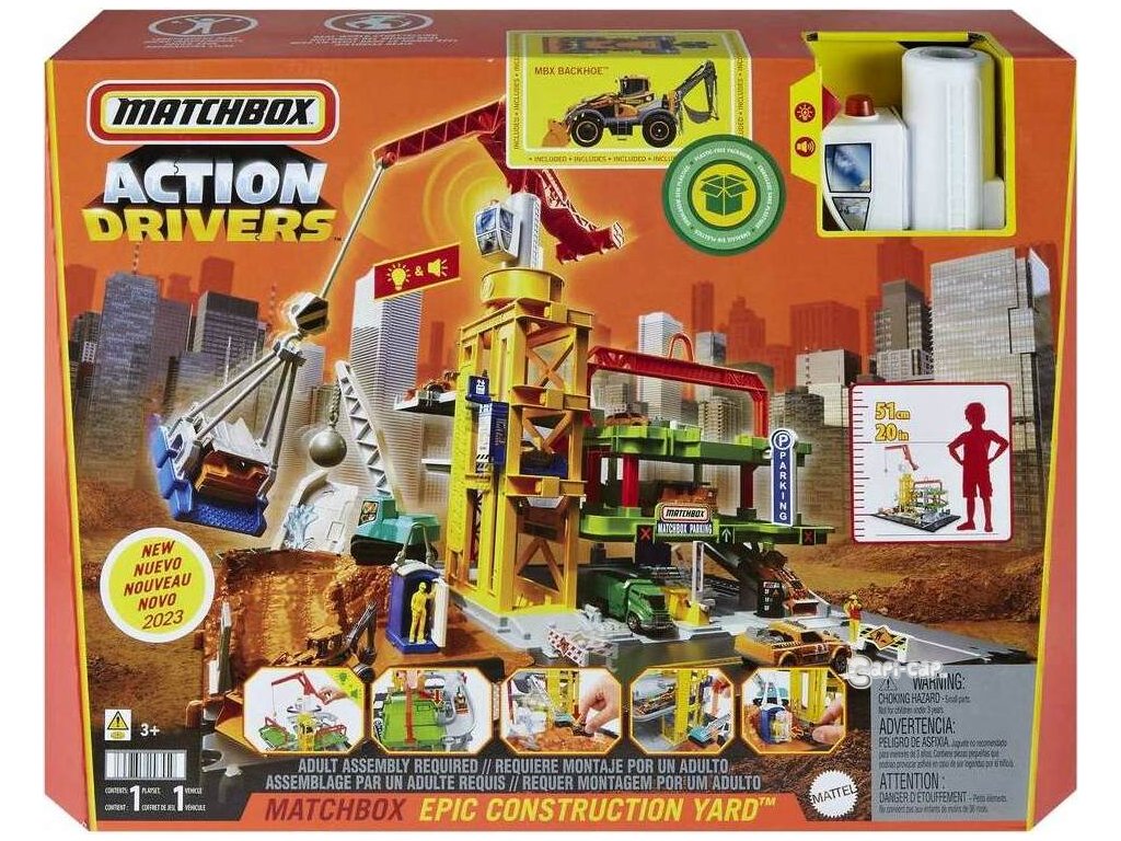 V herním setu Matchbox™ Action Drivers™ Staveniště se světly a zvuky mohou děti prozkoumat realistické staveniště, které je plné zábavných a vzrušujících funkcí aktivovaných dětmi a autíčky. Díky jeřábu poháněnému dětmi a dalšími herními prvky je tento herní set plný dobrodružství! Barvy a vzhled výrobku se mohou lišit.
