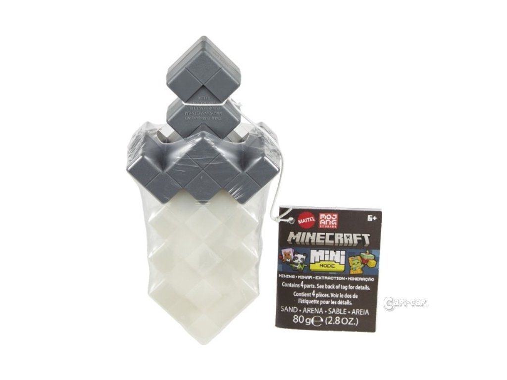 Součástí balení je 1 schránka, 1 figurka, 1 nástroj pro těžbu a 1 sáček s formovatelným pískem.