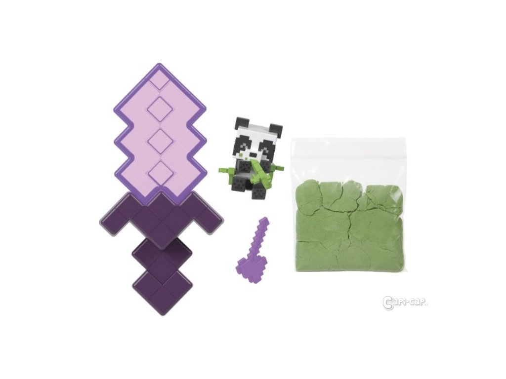 Otevřete opakovaně použitelnou schránku ve tvaru meče z Minecraftu a objevte uvnitř minifigurku v animované póze určené k vyprávění příběhů. Navíc je každá figurka dodávána s těžebním doplňkem a formovatelným pískem, který lze přeměnit na různé tvary.