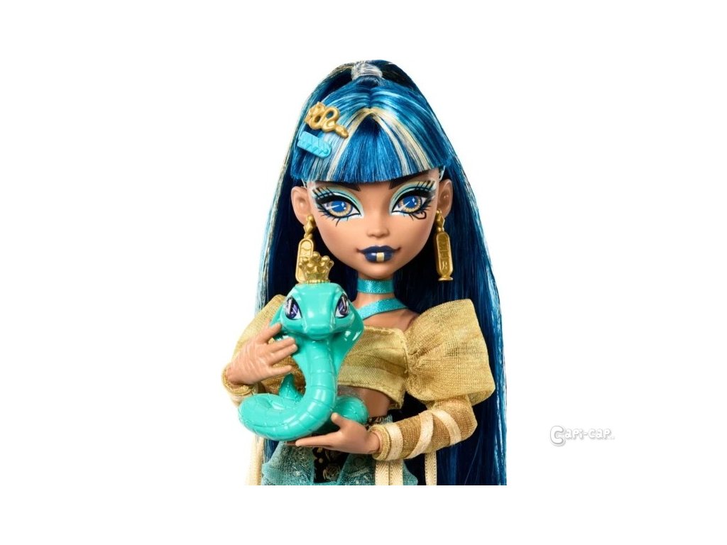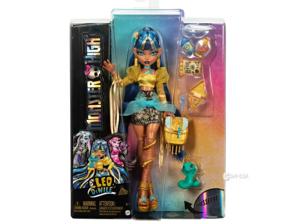 Tato panenka Monster High™ je fakticky mumiózní! Cleo De Nile je od hlavy až k patě oblečená ve svém elegantním stylu. Její strašidelná kobra Hissette je také připravena zapojit se do děsivých dobrodružství! Se svým kloubovým tělem a příšerkovskými doplňky pro vyprávění příběhů je panenka Cleo skvělým dárkem pro děti od 4 let.