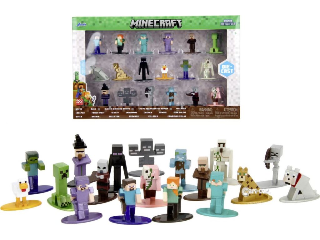 Kovové sběratelské nanofigurky Minecraft, multipack 18 ks. Výška figurky 4 cm.