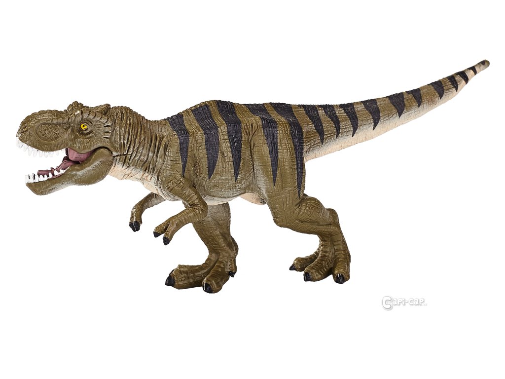 Tyrannosaurus Rex je možná nejznámější dinasourus vůbec a to díky své velikosti, hrozivosti a pravidelným zmínkám v médiích. Díky několika dobře dochovaným fosíliím mohli paleontologové ze všech koutů světa T‑Rexe do detailu studovat. Osahejte si s touto figurkou pradávnou historii života na Zemi. Díky kvalitnímu zpracování s množstvím jemných detailů tento prehistorický tvor v rukou i na poličkách ožívá, snadno tak zaujme i seriózní sběratele. Figurka je vyrobena z odolného a nezávadného plastu, balena a dodávána v průhledném plastovém sáčku. Hlavní vlastnosti: pohyblivá čelistjemné detaily a atraktivní zbarveníodolné provedeníopatřeno licencí respektovaných dokumentaristůnavrženo ve spolupráci s komunitou sběratelůvelikost: extra velká