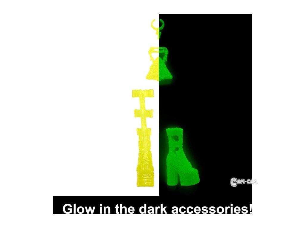 Její jedinečný monstrózní look bude v této sérii zdůrazněn speciálními neonovými doplňky, svítícími ve tmě. Veškeré příslušenství, které je součástí sady, jsou překvapeni zachována ve stylu Frankie. Panenka je unikátní, plná barev a detailů, díky čemuž je Monster High místem, kde styl a dobrodružství setkávají na každém kroku!