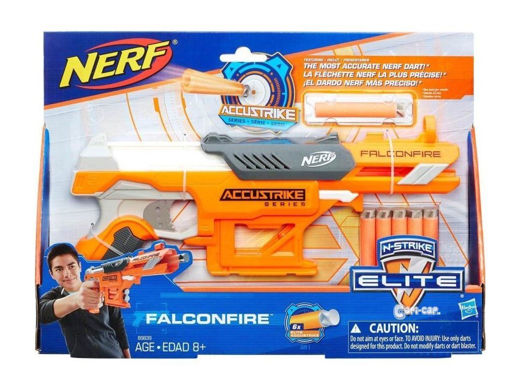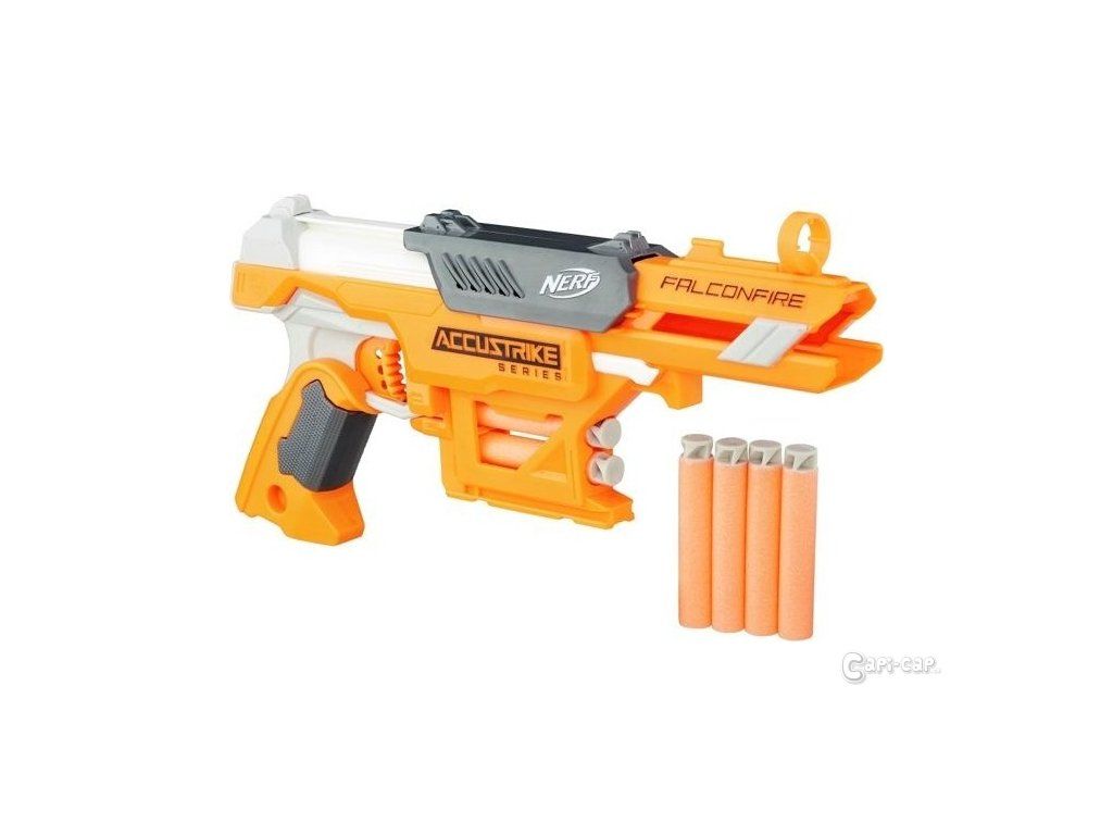 Pistole Nerf FalconFire je součástí řady AccuStrike Series, nabij ji speciálními šipkami s hrotem, zajišťujícím větší přesnost a zasáhni cíl.