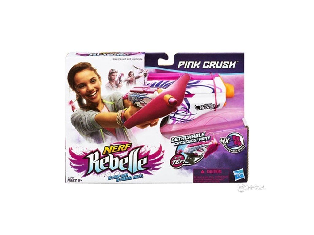 Kdo říká, že nemůžete vypadat skvěle při akční zábavě? Vyzbrojte se stylovou silou pistole Pink Crush! Tato pistole dokáže střílet šipky na terče ve vzdálenosti až 25 metrů. Když si to akce žádá, přestavte pistoli na kuši pomocí přiloženého nástavce! Můžete vypadat mile akřehce, ale budete vyzbrojena do akce s pistolí Pink Crush!
