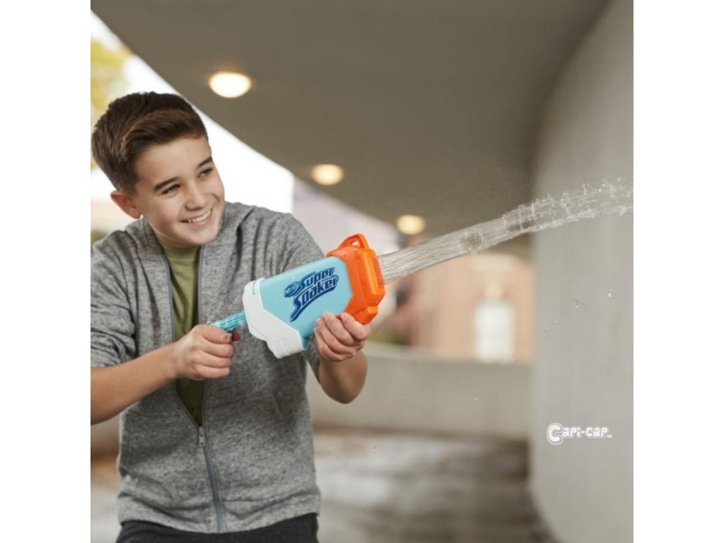 Rozbalte to s vodními blástry Nerf Super Soaker! Tyhle venkovní hračky nejsou jen pro děti, skvěle se s nimi vyřádí i dospělí. Na co ještě čekáte? Honem je běžte naplnit a hurá do akce! Vodní bláster Nerf Super Soaker Torrent vypouští proud vody z hlavně. Zamiřte cíl a zatlačte rukojeť pístu dopředu, abyste ho osprchovali silným proudem vody. Používání je doslova hračka! Přední část blástru ponoříte do vody a zatažením za rukojeť pístu naplníte nádrž.