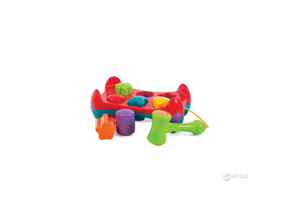 Buch, buch, buch Zatloukačka s tvary rozvíjí jemnou motoriku, představivost a dětskou paměť. Dítě se hrou naučí rozpoznávat základní tvary. Provedeno ve veselých barvách. Skvělá hračka pro zlepšování koordinace pohybů.