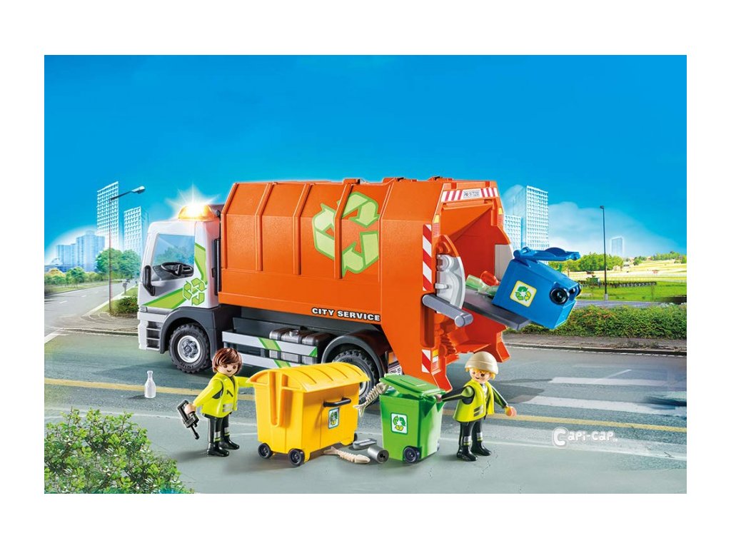 Hrací sada obsahuje dvě figurky PLAYMOBIL, popelářský vůz s blikajícím světlem (baterie jsou součástí balení), kontejner, dvě popelnice s odpadky a mnoho dalších doplňků. Střechu popelářského vozu lze odstranit. Popelnice se zvednou pomocí páky a vyprázdní se do vozidla.