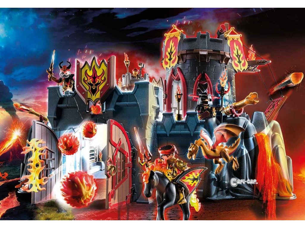 Nový rytířský svět PLAYMOBIL® překvapuje kreativními zbraněmi, sofistikovanými obrannými systémy a originálními postavami. Klasika PLAYMOBIL® ve skvělém novém designu zaručuje zábavu po mnoho hodin. Pevnost Burnham Raiders Fortress má řadu obranných funkcí: ohnivé šípy na obou stranách, ohnivé koule a padací dveře do vězení. Součástí hry je vůdce postav Novelmore Bayron Burnham a jeho syn Brody, kovář Sulphur a ďábelský rytíř Lucifex. V pevnosti je další vstup do pevnosti.