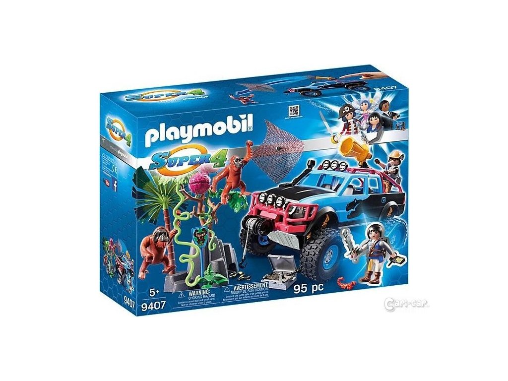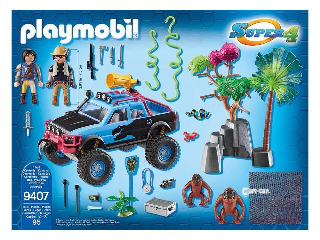 Monster truck s dělem vystřelující sítě pro odchyt divokých opic. Odnímatelná střecha vozidla, součástí je také přední naviják. Prales s divokými opicemi. Postavička prince Alexe a lovce Rocka Brocka.