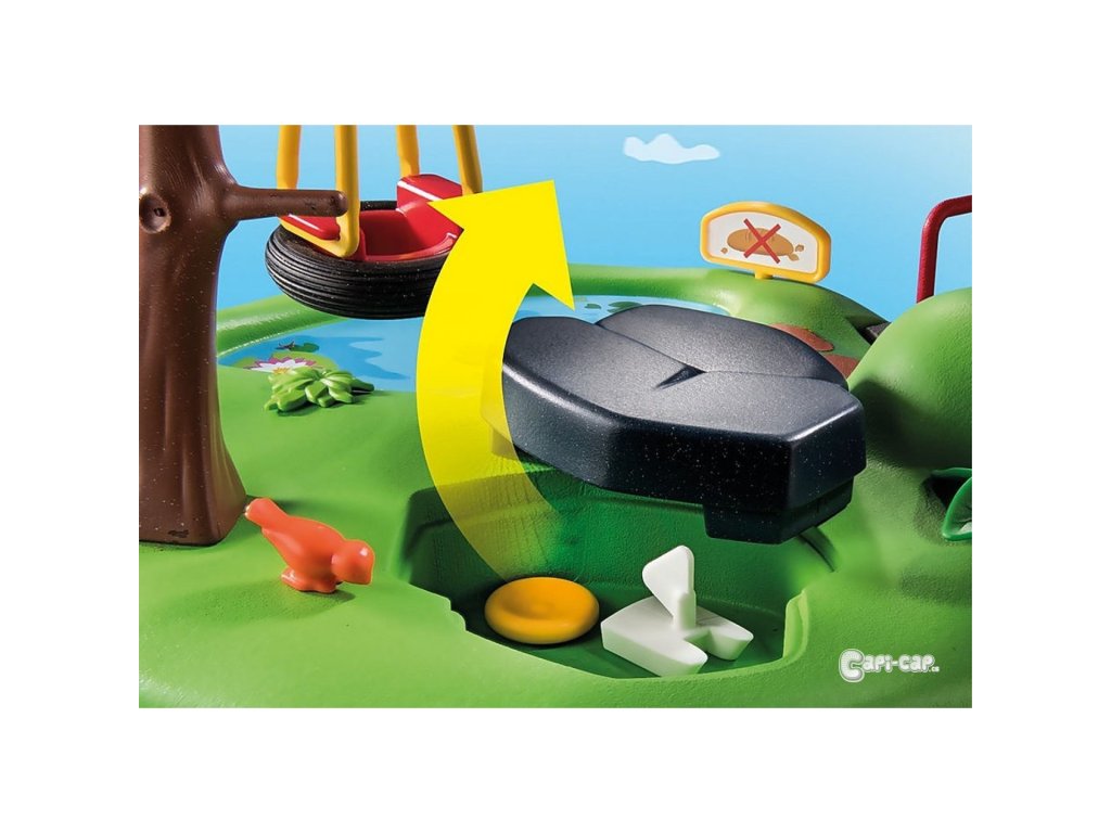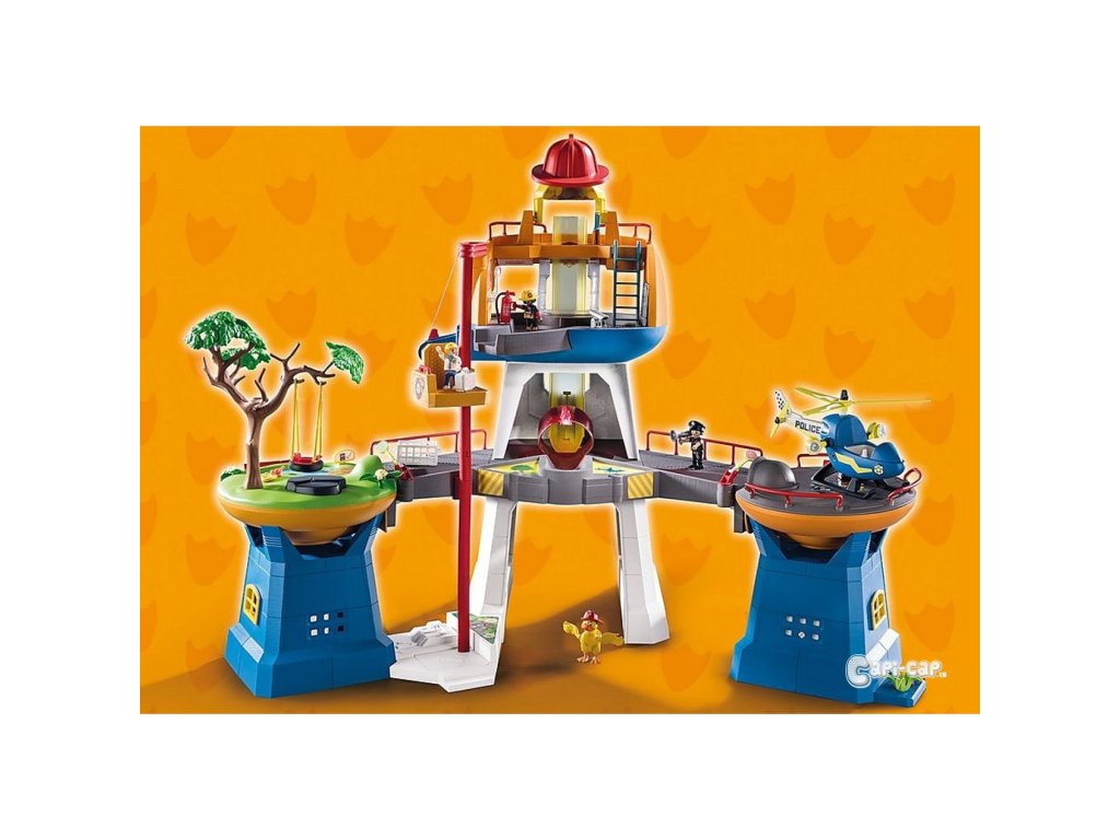 Tajné velitelské centrum v jedné z malých věží a hřiště s jezírkem, stromem, houpačkou a tajným úkrytem nabízejí vzrušující a rozmanitý herní zážitek. S integrovanými světelnými a zvukovými efekty. Včetně skluzavky pro volný pád s ovládáním směru, klikového výtahu a přistávací plochy pro policejní vrtulník integrované v sadě.