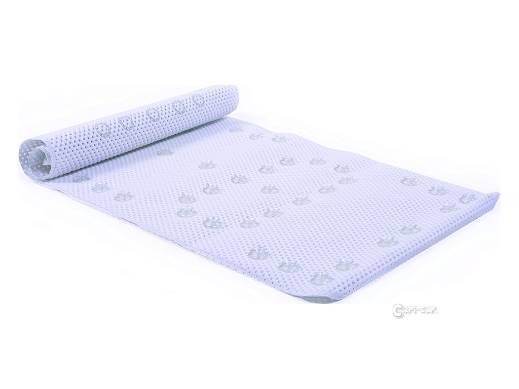 Na rubové straně je opatřena přísavkami, které ji pevně drží na místě i na hladkém povrchu vany/ sprchového koutu, a zabrání tak uklouznutí dítěte.