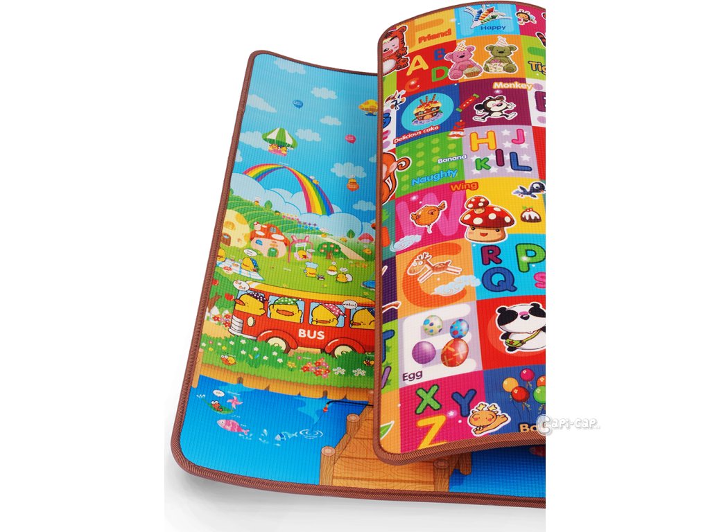 Podložka má oboustranný potisk s veselými motivy, protiskluzovou úpravu na povrchu, skvěle izoluje a odhlučňuje, je voděodolná, jemná na povrchu, elastická, avšak tvarově stabilní, skladná a především poskytuje dětem bezpečí při hře.