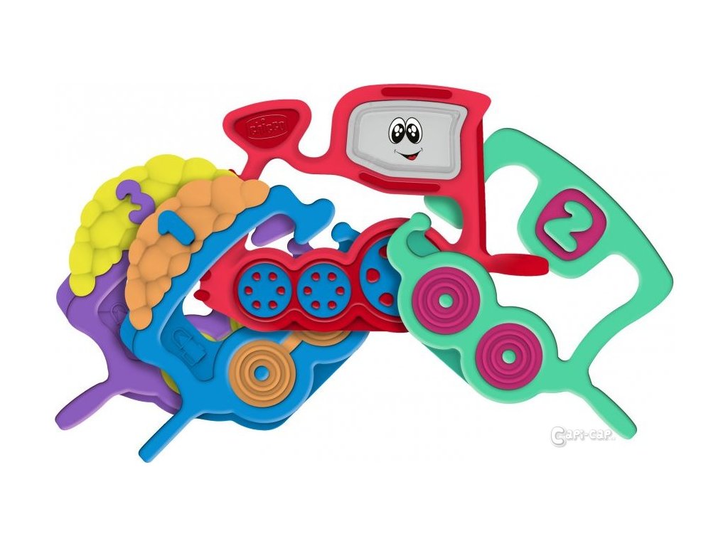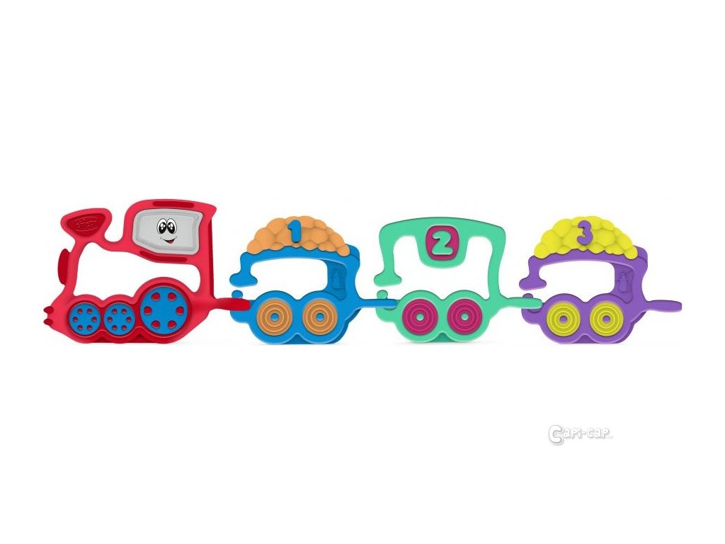 Plastové kousátko v designu barevného vláčku s čísly. Vláček lze rozpojit a znovu složit a tak podpořit dětskou kreativitu. Jednotlivé vagóny jsou očíslovány aby se dítě snadněji učilo poznávat čísla. Určení pro děti od 3 měsíců.