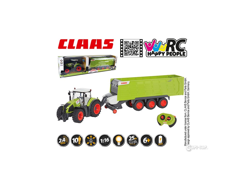 Traktor s přívěsem na dálkové ovládání s frekvencí 2,4 GHz.