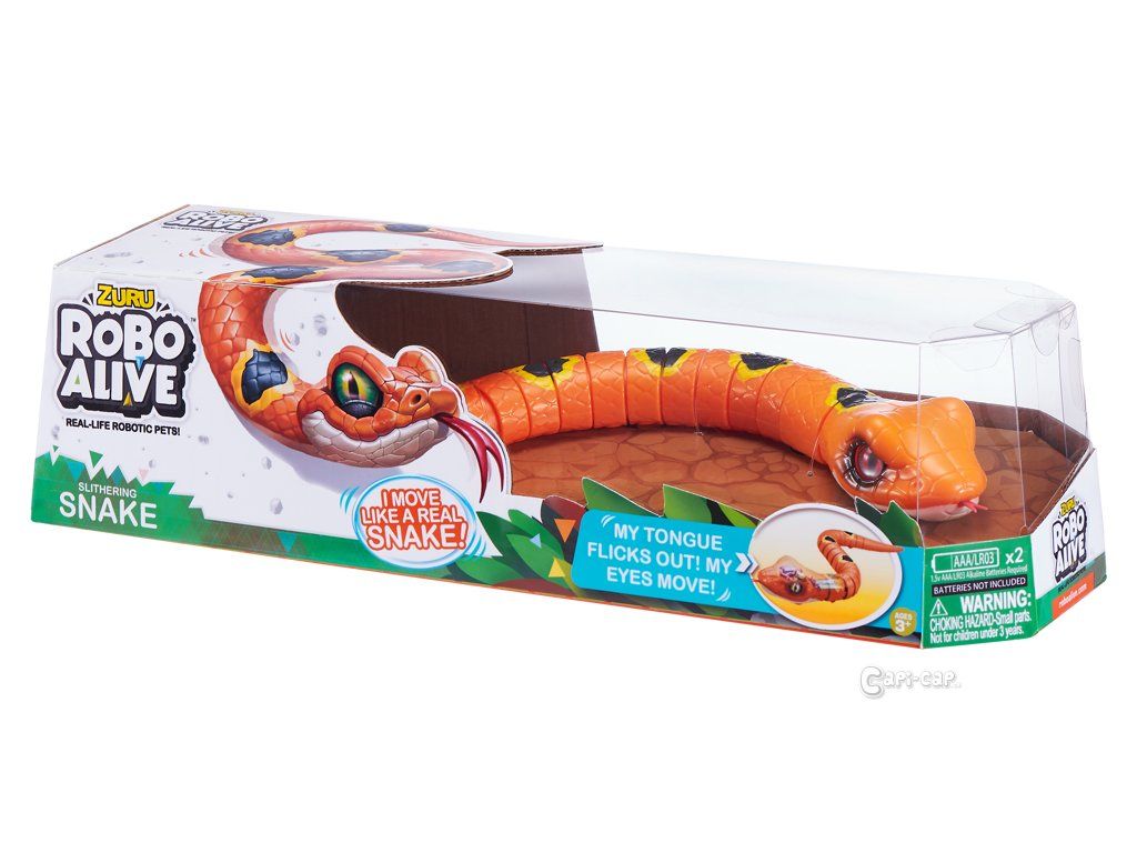 Představujeme vám jedinečnou novinku z řady výrobků ROBO. Tito hadi vypadají opravdu jako živí. Položte je na zem a sleduje, jak se plazí. Vlní se na zemi stejně, jako tito živí plazi. Pokud je chytnete za ocas, díky speciálním senzorům okamžitě znehybní. Mají tak krásné realistické oči a úžasné zbarvení. Když se plazí, vystrkují a zastrhují jazyk, jako opravdoví hadi.
