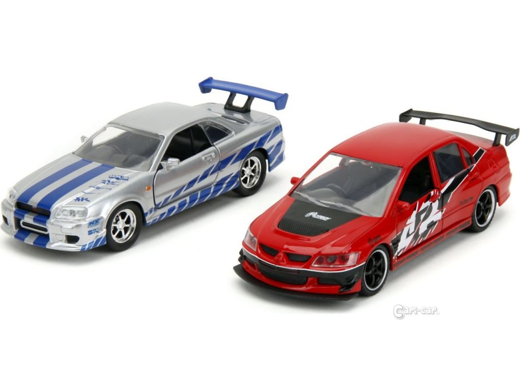 Rychle a zběsile Twin Pack 2006 Mitsubishi Lancer Evo IX + Brianův 2002 Nissan Skyline GTR R34, 1:32 Wave 4/2