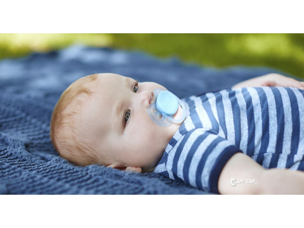 Ortodontický, stlačitelný a symetrický sosák AVENT podporuje správný vývoj zubů a ústní dutiny.