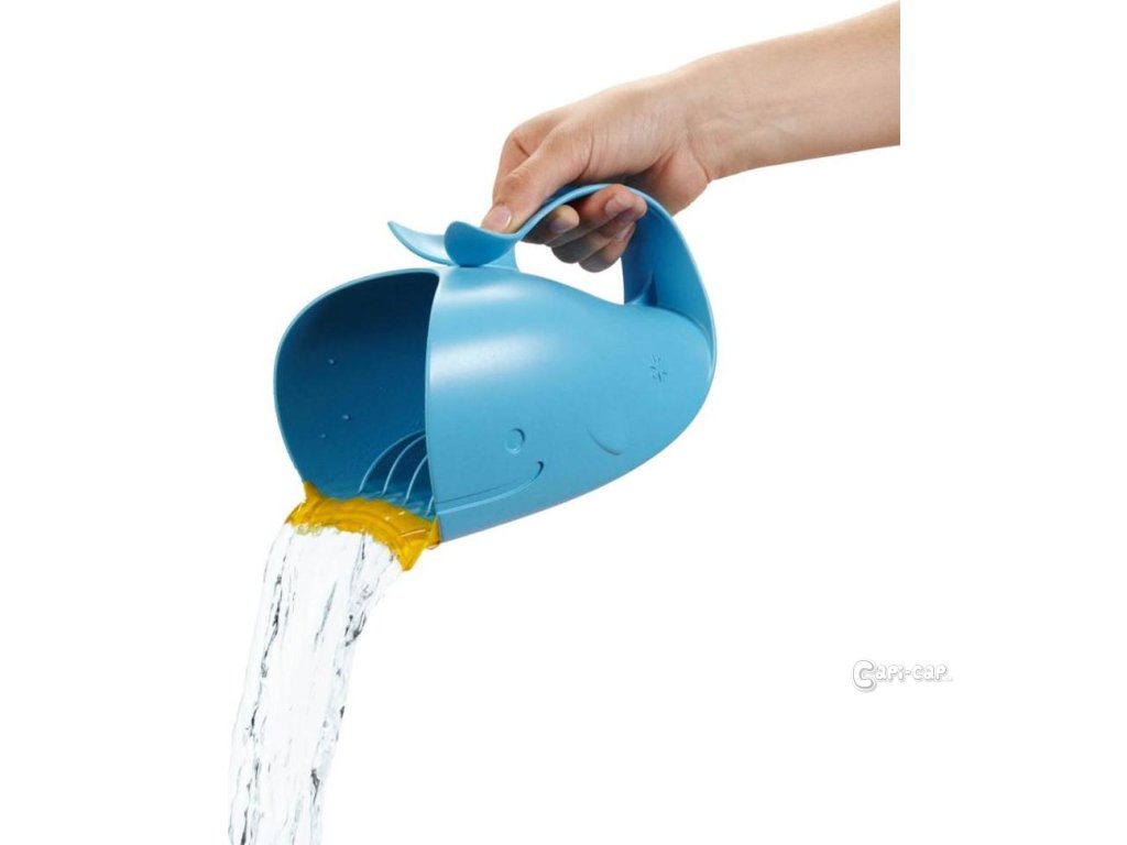 Hrnek Moby přináší inovaci při oplachování. Díky vnitřním přepážkám je tok vody ustálený, čímž se zajistí rychlé oplachování. Měkká guma přirozeně kopíruje tvar čela, čímž se zabrání vniknutí vody do očí. Lehká rukojeť umožňuje držet hrnek v jedné ruce, zatímco ve druhé ruce držíte miminko.