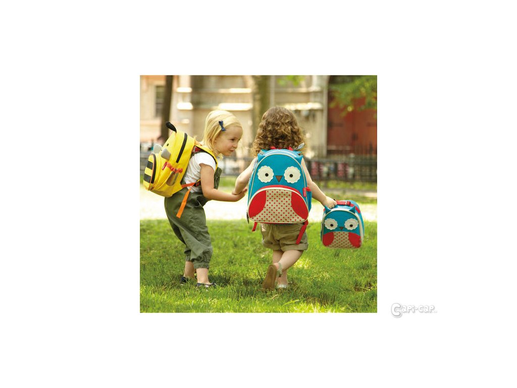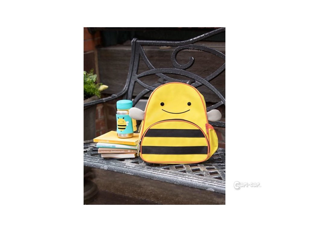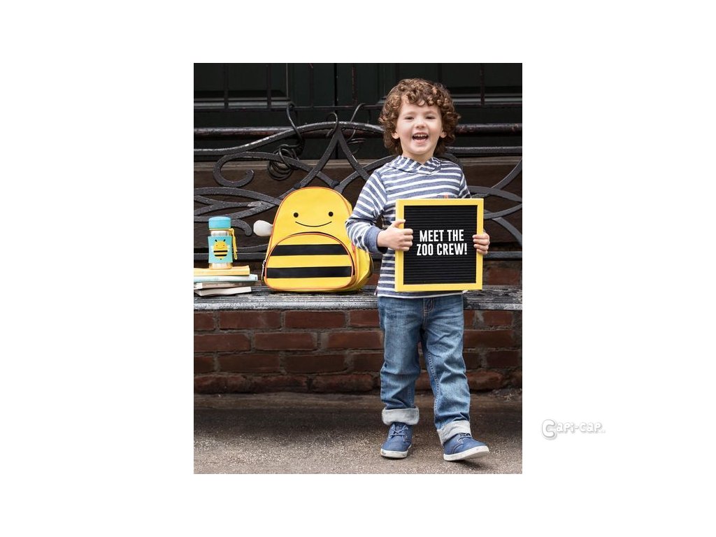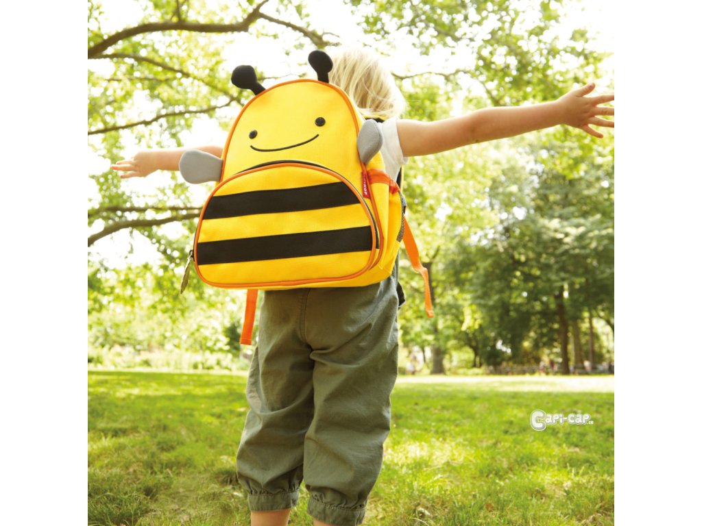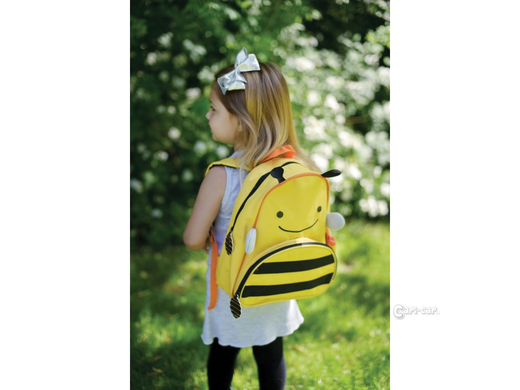 Krásný batůžek s motivem včelky. Batoh má přední oddělenou kapsu ideální na svačinu s extra kapsou na pastelky či jiné drobnosti. Na straně je umístěna prostorná síťovaná kapsa vhodná na pitie. Prepracované detaily batůžku ladí s veselými motivy na zipu.