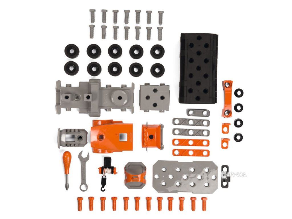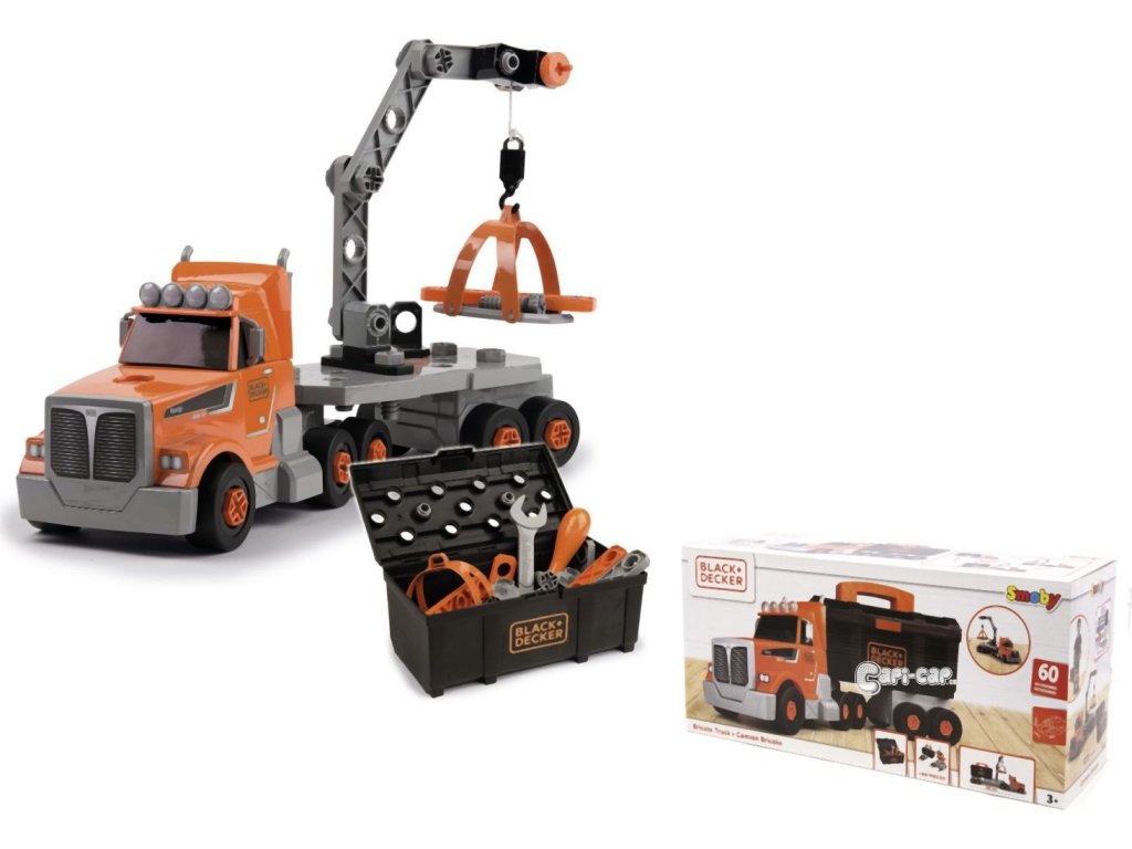 Stavební nákladní auto, přívěs má odnimatelnou schránku na nářadí. Obsahuje mnoho doplňků, ze kterých lze sestavit jeřáb. Rozměry rozbaleného výrobku: 43 x 17,40 x 13,30 cm. Vhodné od 3 let.