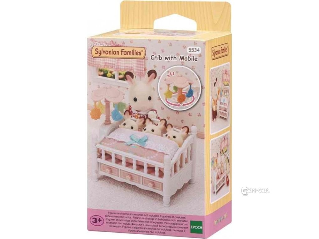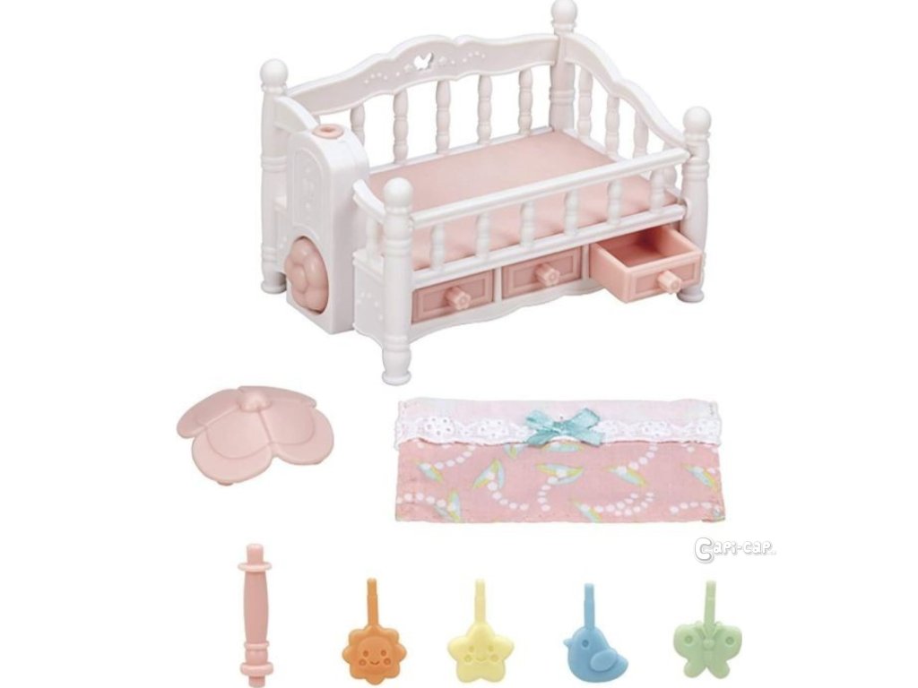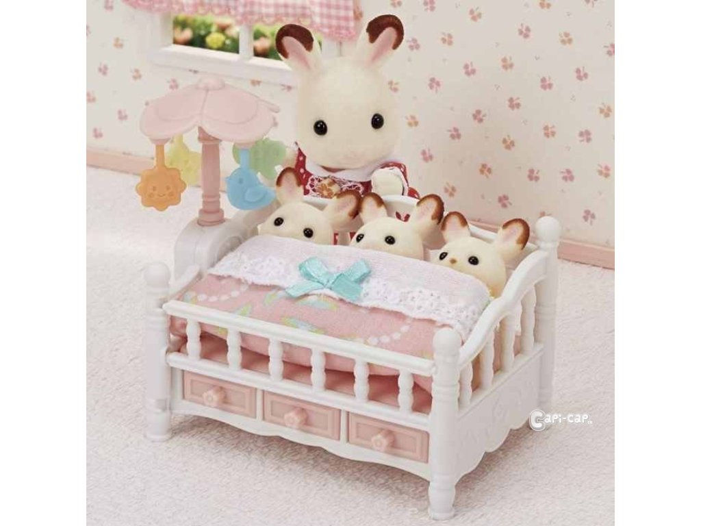 Tato rozkošná postýlka pro trojčátka s otočným kolotočem se může rychle proměnit na postel pro větší děti. Ve spodní části postele jsou tři šuplíčky na uložení náhradních přikrývek a povlečení. Otočením květiny na boku postýlky rozpohybujte dětský kolotoč. Užijte si více zábavy s dalšími figurkami a doplňky Sylvanian Families (prodává se samostatně). Herní sady a figurky Sylvanian Families jsou nadčasové a vysoce kvalitní hračky. Hra podněcuje představivost dítěte. Sada obsahuje: 1x postýlka, 3x šuplíčky, 1x otočný kolotoč, 1x přikrývka. Věk: 3+