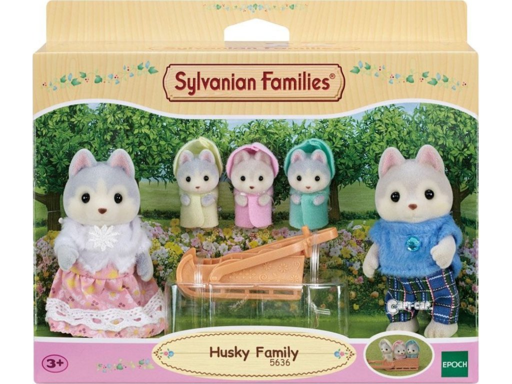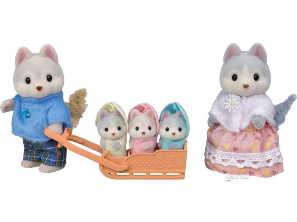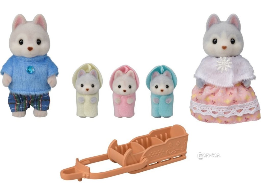 Rodina Husky obsahuje pět figurek: otce Vincenta, matku Avril a trojčata Rae, Drakea a Nelly a také sáňky pro trojčata. Figurky mají krásnou šedou a hnědou srst. Rozkošná trojčata mají na sobě barevné kabátky s kapucí. Trojčata mohou jezdit na saních. Matka i otec mohou držet sáňky a táhnout svá trojčata. Zkombinujte se sadami Tandemové kolo pro Husky sourozence (5637) a Dvojčata Husky (5638) pro zábavu s celou rodinou Husky (obojí prodejné samostatně). Sáňky lze připojit na tandemové kolo a tak může na výlet celá rodina Husky pěkně pohromadě. Nebo je zkombinujte s dalšími domy a nábytkem (prodávají se samostatně) pro ještě zábavnější a nápadité hraní. Všechny končetiny jsou pohyblivé a hlavička otáčecí. Oblečení je vyrobeno tak, aby se dalo opakovaně svlékat a oblékat. Věk: 3+