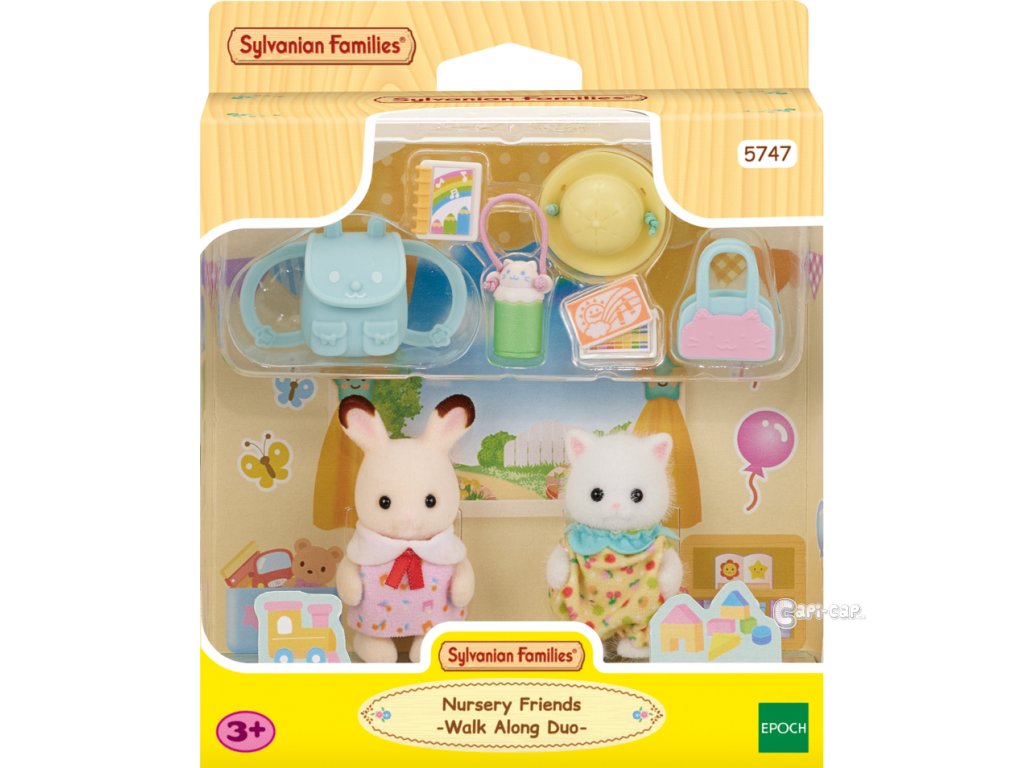 Tato sada obsahuje doplňky, jako je batoh, čepice a láhev na vodu – vše, co miminka potřebují na procházku do školky. Miminka mají na sobě roztomilé, barevné oblečení. Miminka mohou nosit a držet batoh, tašku, láhev s vodou a čepici. Pastelky a skicák lze vložit do batohu nebo tašky. Dítě čokoládového králíka Creme a dítě perské kočky Ryan. Věk: 3+