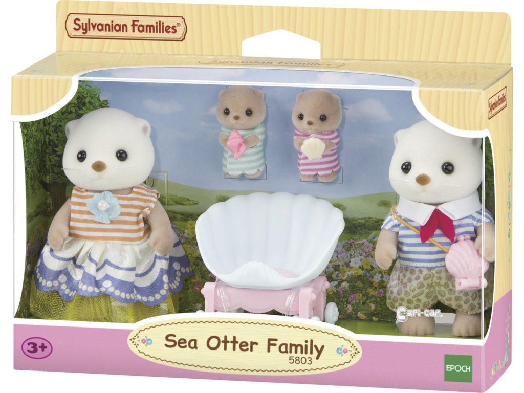 Poznejte rodinu mořských vyder Sylvanian Families. Sada obsahuje 4 roztomilé figurky rodiny mořských vyder pokryté měkkým semišem. Mořské vydry mají oblé tvary, malá ouška a roztomilé čumáčky. Vydry milují výlety k moři, kde se cítí jako doma. Maminka Myra, tatínek Colin a dvojčata Cary a Courtney rádi sbírají mušle a pozorují vlny. Dvojčata jezdí v roztomilém vozíku ve tvaru mušle. Cary a Courtney drží své oblíbené mušle. Tatínek Colin miluje trávit čas na pláži a pozorovat moře. Maminka Myra je známá tím, jak rychle dokáže otevřít mušle. Její polévka z mušlí je oblíbená mezi všemi obyvateli Sylvanian Families. Hračky Sylvanian Families rozvíjejí představivost a povzbuzují děti k hraní rolí. Hra s figurkami rozvíjí kreativitu a učí emocím vytvářením a vyprávěním příběhů založených na každodenních zážitcích a pozorování světa. Vyznačují se nejvyšší kvalitou a výjimečným důrazem na detaily. Figurky Sylvanian Families mají pohyblivé končetiny a hlavu. Baleno v krabičce. Rozměry balení: 13 x 17,6 x 5,5 cm. Věk: 3+