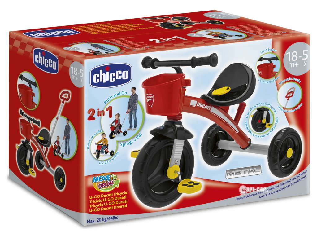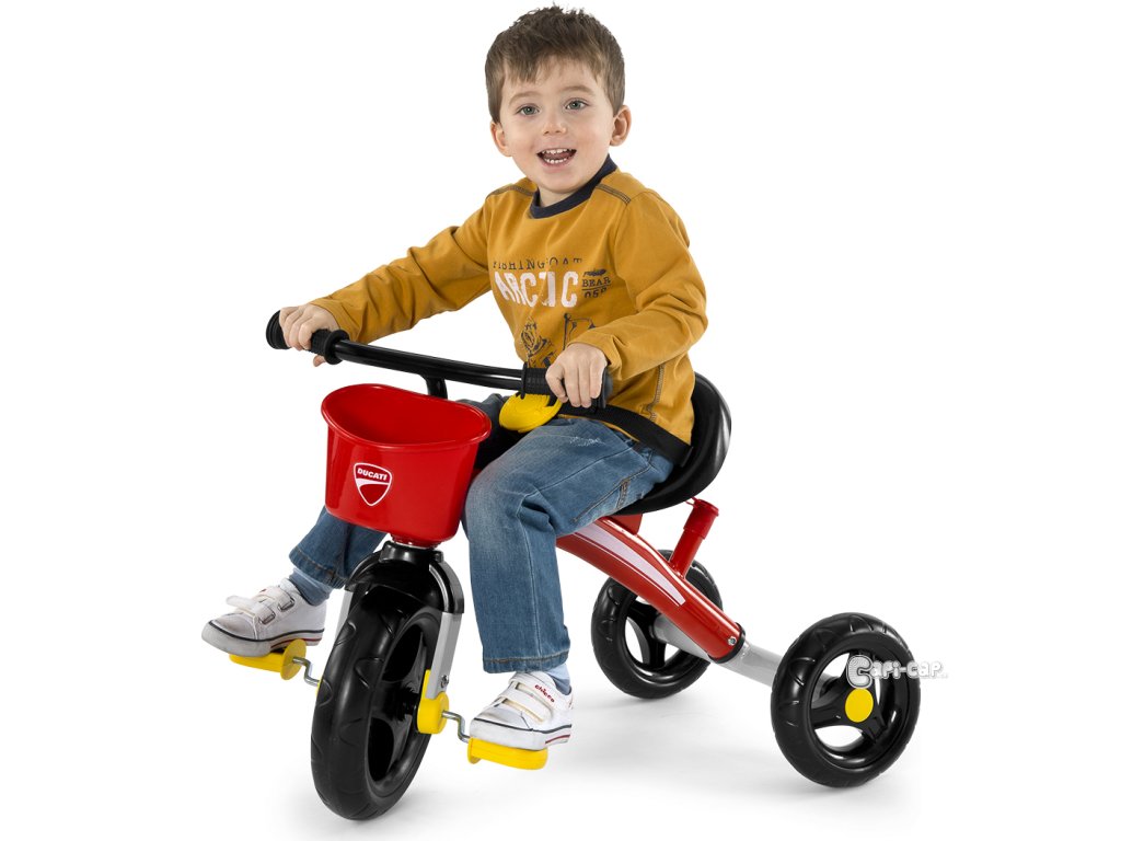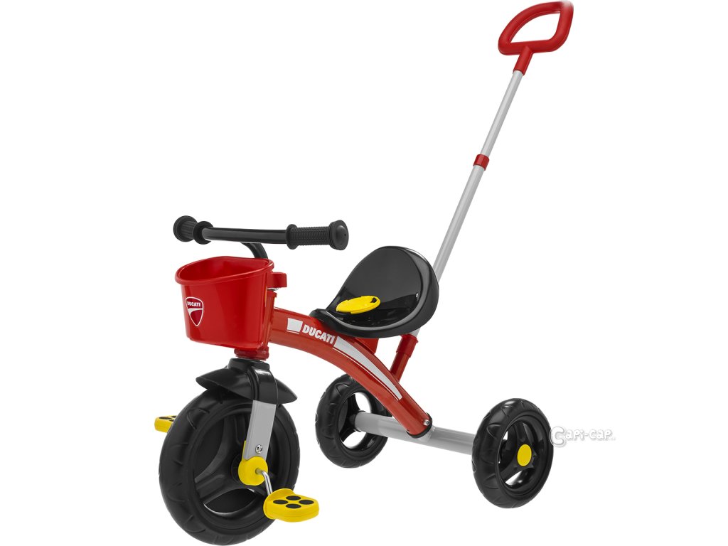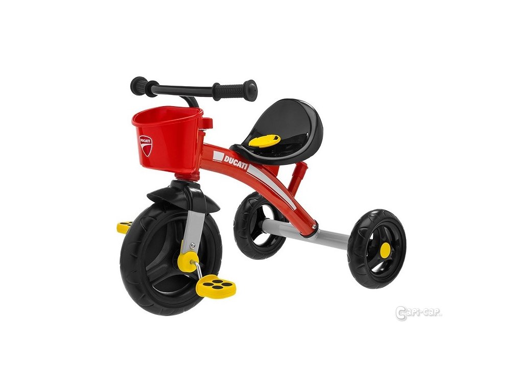 Tříkolka ve sportovním a moderním designu inspirovaným ikonickou motoristickou značkou Ducati.