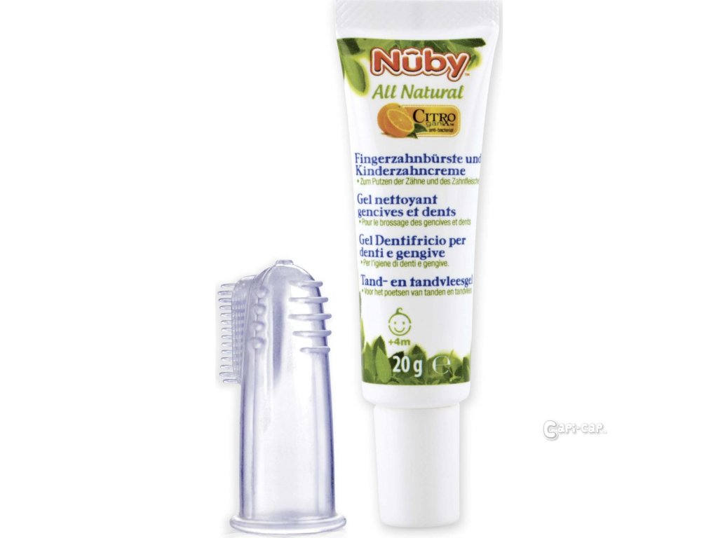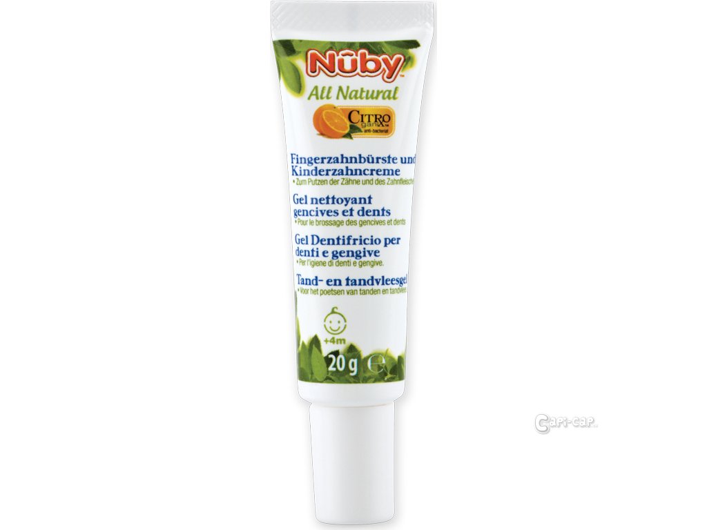 Zubní gel Nuby Citroganix je speciálně navržena pro bezpečné čištění zubů a dásní dětí od 4 do 24 měsíců.